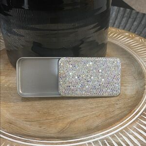 Dazzling AB rhinestone container. Perfect for adding a touch of glamour to your essentials. Great to keep in your purse. Never used.