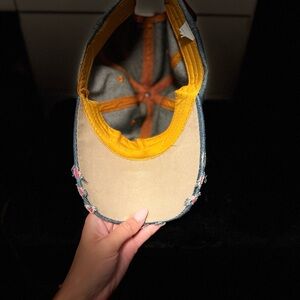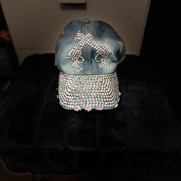 Glamorous denim hat with dazzling rhinestone embellishments. Ideal for a chic look.