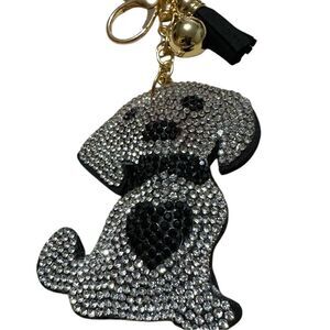 Sparkling Dog Keychain – This adorable and stylish keychain features a cute dog design encrusted with shimmering rhinestones. Accented with a gold-tone clasp, a tassel, and a decorative charm, it’s perfect for adding a playful and glamorous touch to your keys, bag, or accessories. A must-have for dog lovers who enjoy a little sparkle!