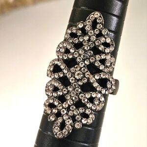 Elegant filigree leaf design. Encrusted with sparkling stones. Perfect for any occasion.