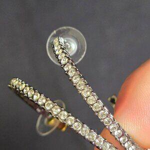 Each hoop features pave-set rhinestones along the front and inner rim, creating a sophisticated and timeless design.