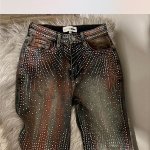 Dazzle in these sparkling rhinestone jeans. Comes with a chic silver bag. Perfect for a night out.