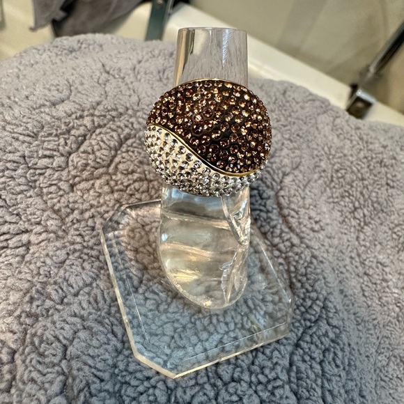 Dazzling statement ring with brown and silver rhinestones. Ideal for adding a touch of glamour.