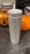 Dazzling rhinestone tumbler with a white matching lid & straw. Perfect for adding glam to your drinks. Only missing ONE tiny gem as shown but otherwise brand new condition. Hand wash only!