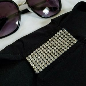 Sparkling Rhinstone Long Sleeve Cold Shoulder Top