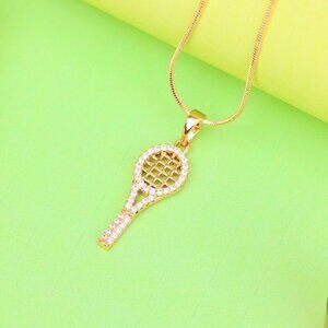 "Sparkling Rose Gold Tennis Racket Pendant, XPPT1313
