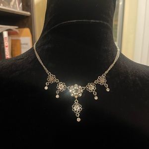 Sparkling Roses of Rhinestones & w/Articulating Stones Necklace, 15” + 4”