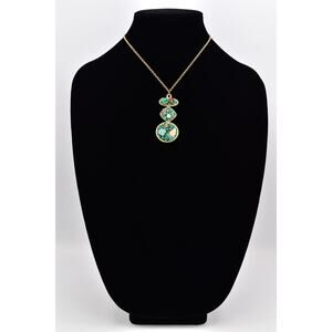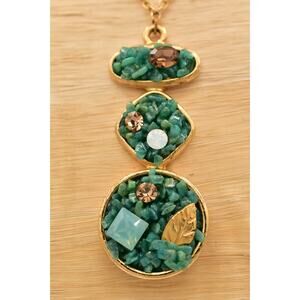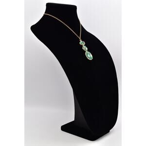 Sparkling Sage Pendant Necklace Green Press Glass Crystal Fall Autumn Leaf Bin3D