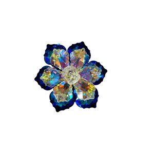 Sparkling Sapphire and Aurora Borealis crystal flower pin brooch