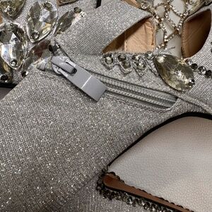 Step into the spotlight with these sparkling silver competition heels that bring the perfect blend of glamour and comfort. Pre-loved but in excellent condition, these heels are made to shine on stage and ensure you feel confident with every step.