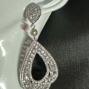 Sparkling Silver Tone Teardrop Dangle Earrings wedding PAGENT Elegant 3134 B