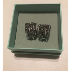 These sparkling earrings are gorgeous! The face features a ton of shimmering marcasite stones set in a beautiful wave design. They are done in a heavy sterling silver plate and layered in rhodium to keep them tarnish free. They are 1” in length and 1” in width and have comfy leverback style closures.