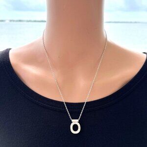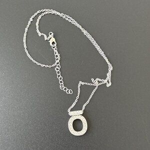 Sparkling Simulated Diamond Pendant Necklace Silver Tone Adjustable Length