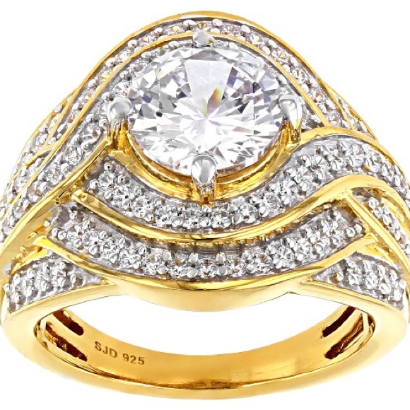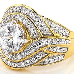 Solitaire Designer Styling, 14k gold over sterling silver ring, size 9. World’s finest diamond simulate, flawless to the naked eye. Looks like thousands of dollars spent. 24 layers of 14k gold is all that touches your skin. A special treat for you💗 Mrs. Got Rocks!