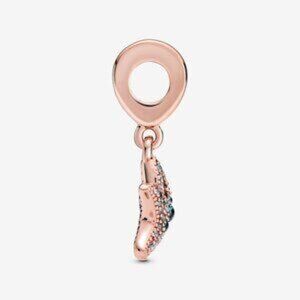 Inspired by the creatures of the deep blue sea, this Sparkling Starfish Dangle Charm adds sparkle to any outfit. The 14k rose gold-plated starfish charm is hand-finished and set with sparkling and beaded details. Icy blue crystals and icy green crystals with beads between them add a gradient of shine as the colours shade from blue to green. Wear the starfish charm as a complement to any beach-themed outfit or as a reminder that the beach is only a daydream away.
