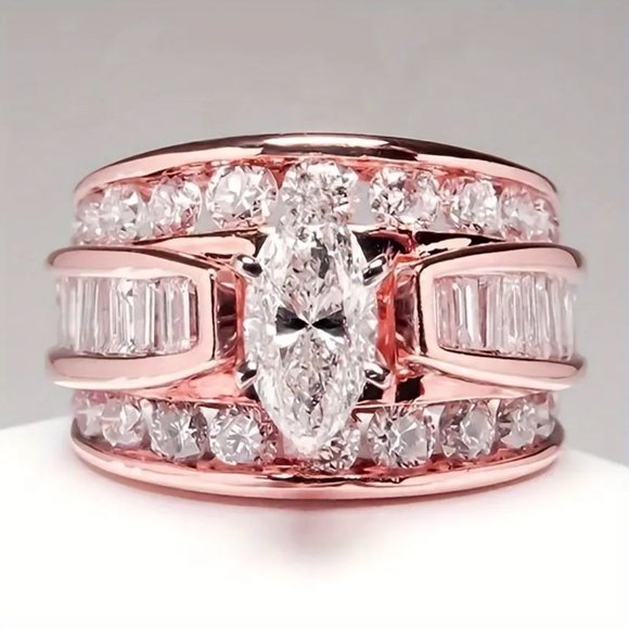 Sparkling Three Row White Zircon Engagement Ring For Women Delicate Jewelry