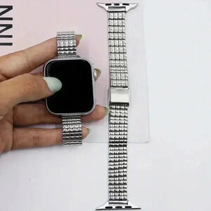 Elevate your Apple Watch with this stylish and sparkling stainless steel band. Crafted from high-quality materials, this band is both durable and comfortable to wear. Whether you're dressing up or down, this band is a perfect accessory for any occasion. For sizes: 42mm, 44mm, 45mm & 49mm.