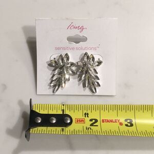 NWT Icing sensitive solutions vintage style jeweled earrings for pierced ears. On the right earring in the photo the bottom stone is missing (see photo). Barely noticeable because of the metallic silver backing. Gorgeous for a special event or special occasion!