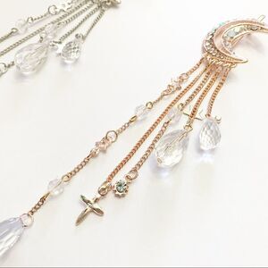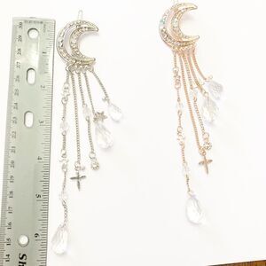 Sparkling Moon Crystal Long Dangle Hair Clip (F3)