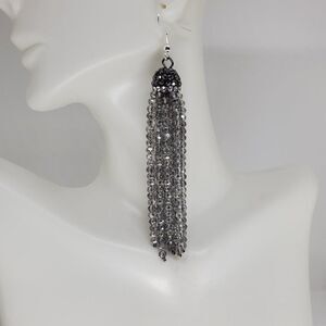 These fun earrings are made with shimmering smoke color glass beads on sterling silver hooks.