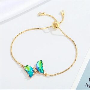 Sparkly Crystal Butterfly Pendant Adjustable Bracelet