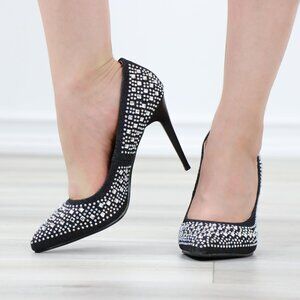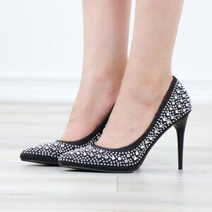 Sparkly Diamond Rhinestone Glitter Black Pointy Toe Needle High Heel Stiletto