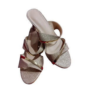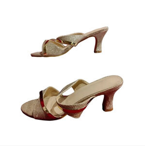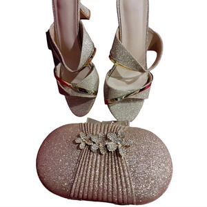 Lovely gold glamorous set complete with shimmery hair pins, glimmery shoes with a 1 inch heel, and a gorgeous sparkly clutch with the gold chain strap and regal detail on the front. Stunning set that goes with a lot. Add your earrings, necklace, and other accessories and voila instantly fabulous ๐. Order it today ๐๐โค๏ธ.