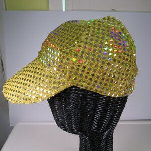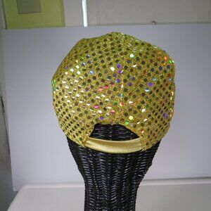 Sparkly Gold Ball Cap Hat Sequins Fabric Holographic 1980s