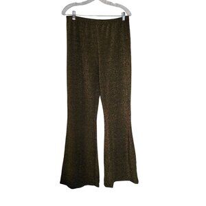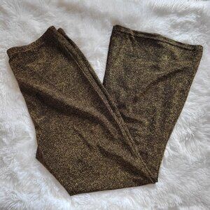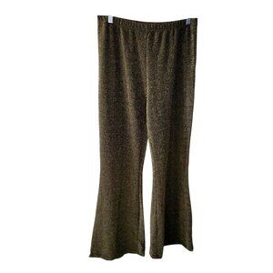 Sparkly Gold Glitter Flared Pants Elastic Waist Stretchy Metallic Blend -XL