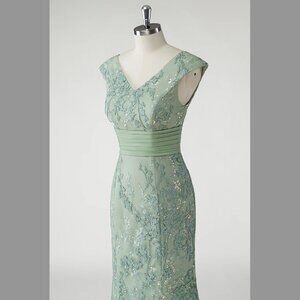Sparkly Green V Neck Pleated Sequin Mother of the Bride Dress Appliques Size 4