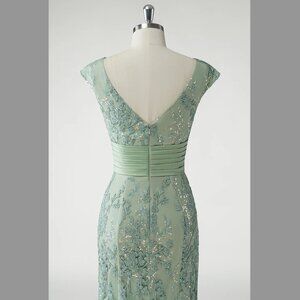 Gorgoeus Sparkly Green V Neck Pleated Sequin Mother of the Bride Dress with Appliques Size 4, V back