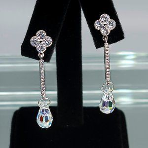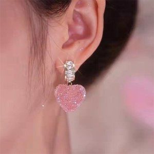 Super Cute Sparkly Heart Shaped Rock Candy Drop Earrings with pave set baguette crystals in gift box