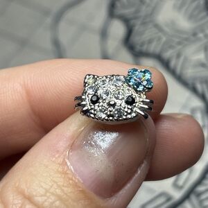 Set of crystal and rhinestone Hello Kitty post earrings! These are used but have only been worn a couple of times. One of the crystals on the ear of one of the earrings is missing but its hard to tell.
