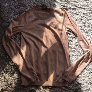 Nudey-Pink. Light weight knit. Semi sparkly. Never worn. Couple snags.