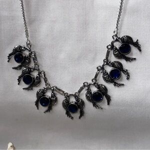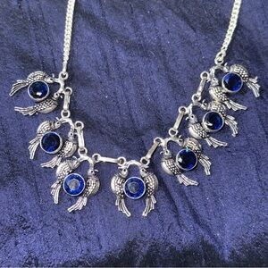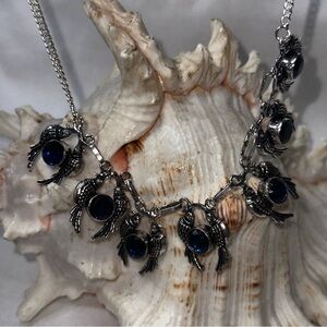 Sparkly London Blue Quartz multi gem set in 7 live bird sets statement necklace