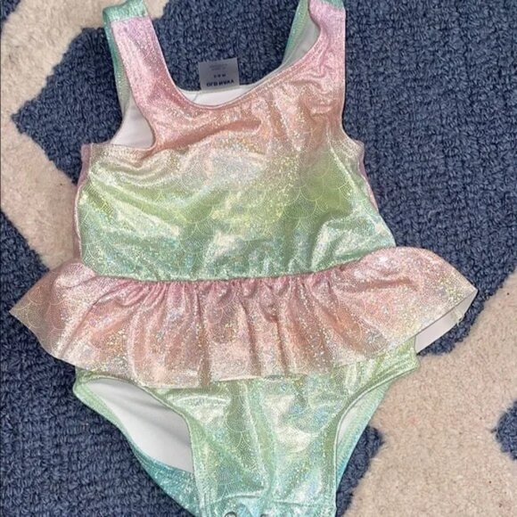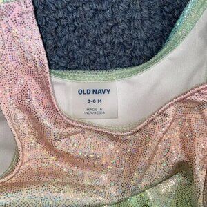 Old Navy 3-6 month sparkly mermaid swimsuit with ruffles. EUC- worn once