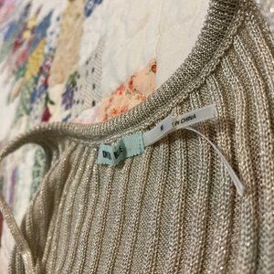 Urban Outfitters Kimchi Blue metallic ribbed cropped thin-strapped tank top. Super Y2K, early Britney Spears vibes. Perfect for New Year's Eve. Color is somewhere between a silver and gold, maybe a metallic cream.