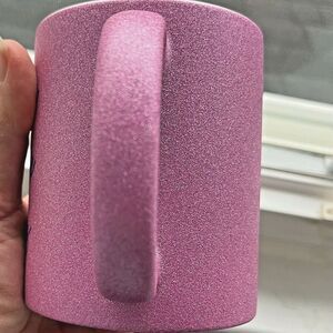 Preowned Sparkly Pink Coffee Mug says Coffee Before Class in dark blue script