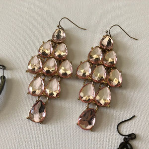 These earrings are big, bold, and beautiful. Sparkly pink teardrop shaped stones on top of gold. Great bundle item!