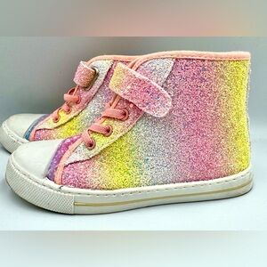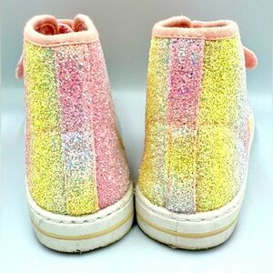 Sparkly Pink and Yellow Kids High-Top Sneakers Sz 13