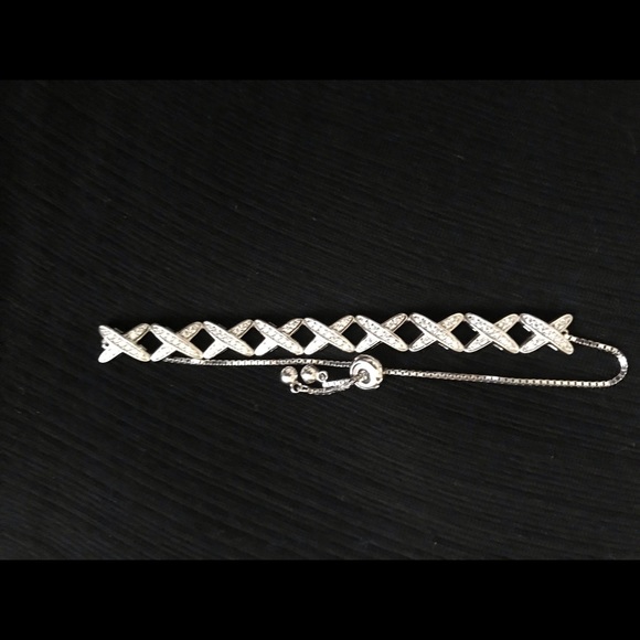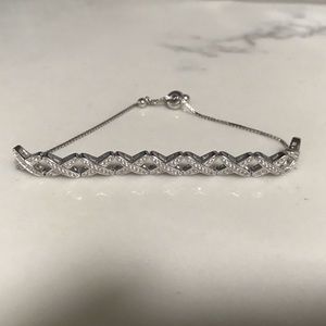 Beautiful rhinestone bracelet with adjustable chain. Will fit small, medium or large wrists. Dress up any outfit with this elegant piece! Make an Offer!