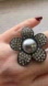 Sparkly Rhinestone Flower Statement Ring Big Pearl Center