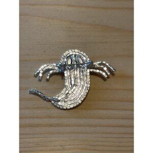 Sparkly Rhinestone Ghost Brooch Pin With Red Eyes For Halloween Costume Jewelry