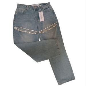 Jeans with rhinestone slits that add fun & shine to your outfit.
