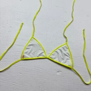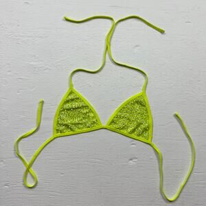 Sparkly Rhinestone Neon Yellow Triangle Bikini Top, M–XL