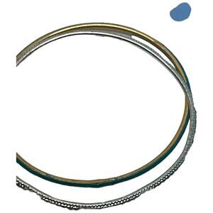 Elevate your arm party with this elegant duo of complementary bangles. The set features one silver-tone bangle adorned with delicate clear rhinestone accents and a coordinating teal glitter-finished bangle. These slim, lightweight bangles are perfect for stacking or wearing separately for a more subtle look.
