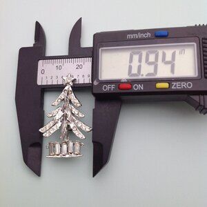 Sparkly Tinsely Silver Christmas Tree Brooch w Diamond and Emerald Cut Crystals