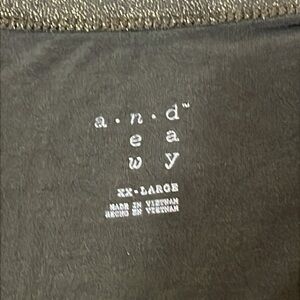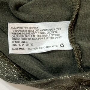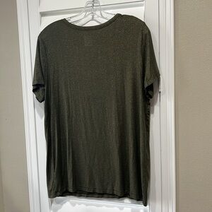 Soft and very stretchy tee - dark green with gold sparkles - lightly worn. Very comfortable.