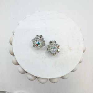 Sparkly Vtg 1950s MCM Aurora Borealis Crystal Cluster Clip On Earrings