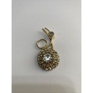This Sparkly White Rhinestone Flower Brooch features a beautiful design with a smoky solitaire accent on goldtone. The vintage piece is perfect for anniversaries or birthdays, adding a touch of elegance to any outfit. The cluster setting style and use of rhinestones give the brooch a luxurious look, making it a timeless accessory for women who love floral-themed jewelry.